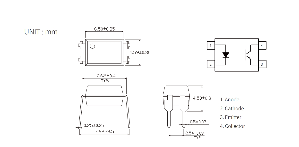 | KL851 | DIP4 | 6.5x4.58x3.5 | 1.2 | 350 | 0.4 | 5 | 50~600 | 4 | 5 | - | - | -55 | +110 | 5000 |
